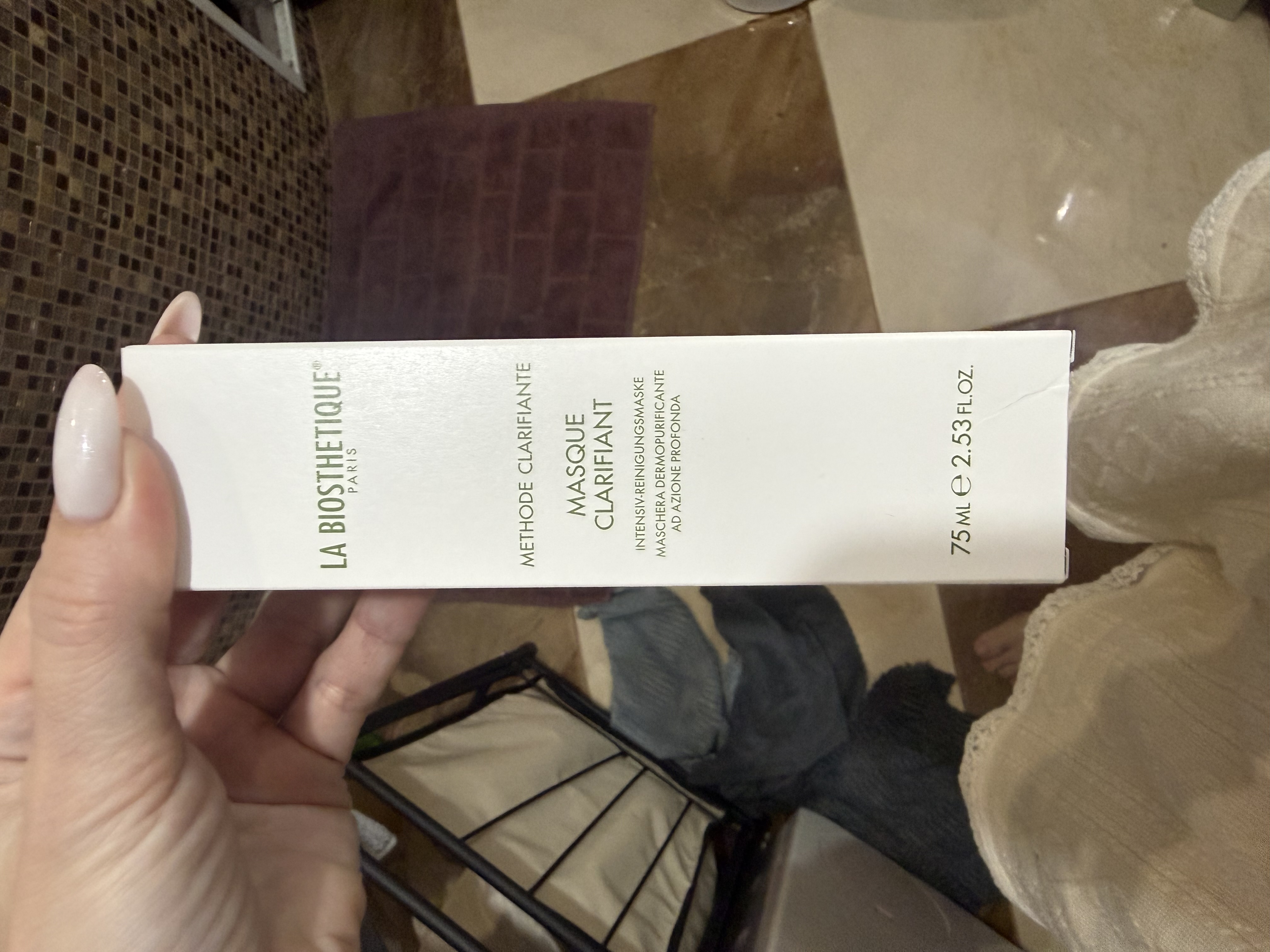Нанести маску Masque Clarifiant плотным слоем 1-2 мм на чистую кожу.